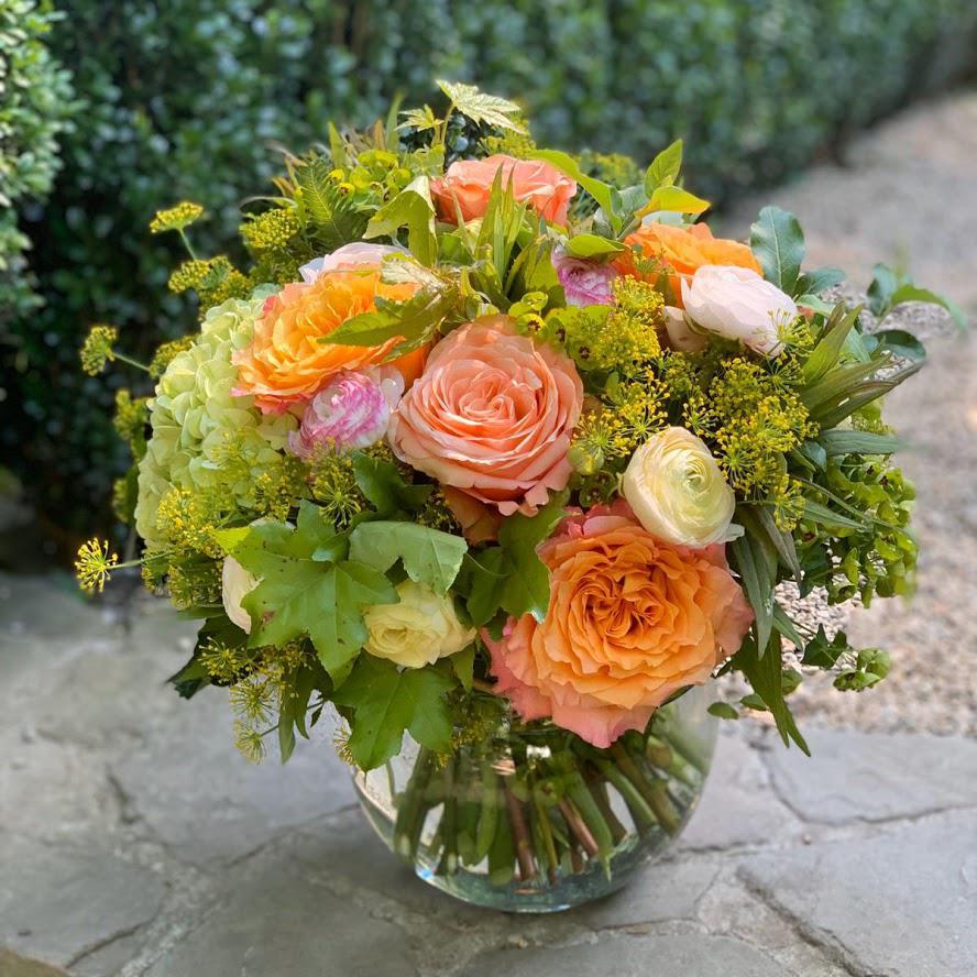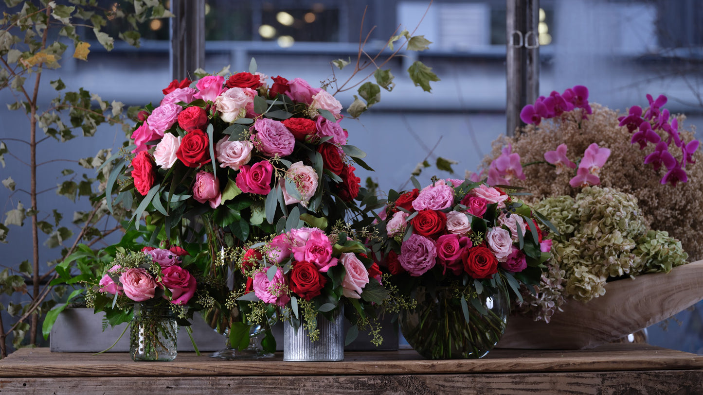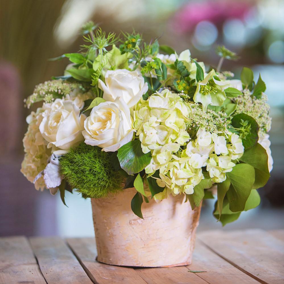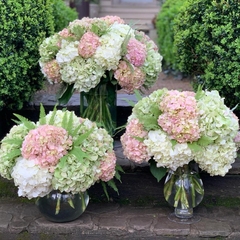 Single-Variety Compositions of All Roses or All Hydrangeas.