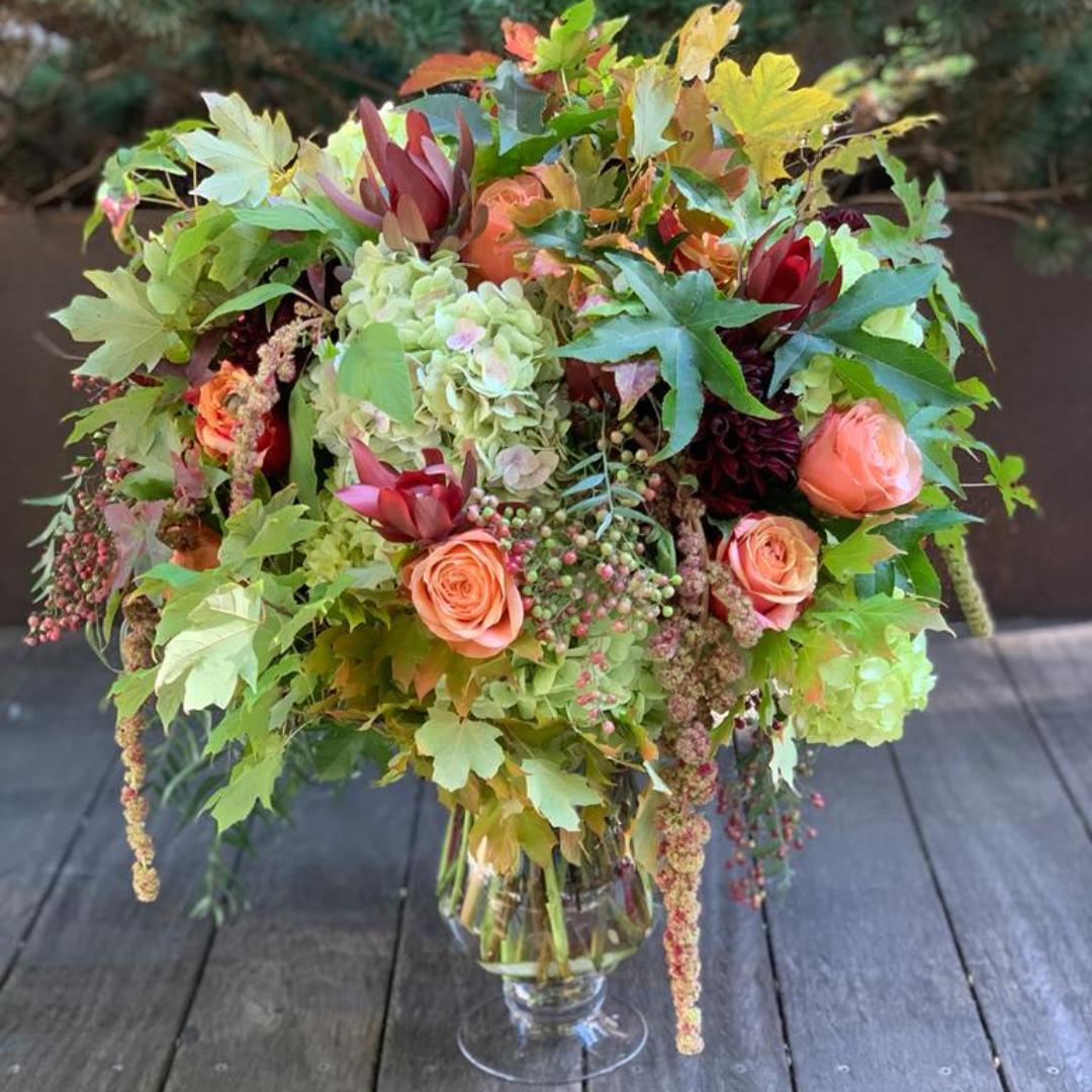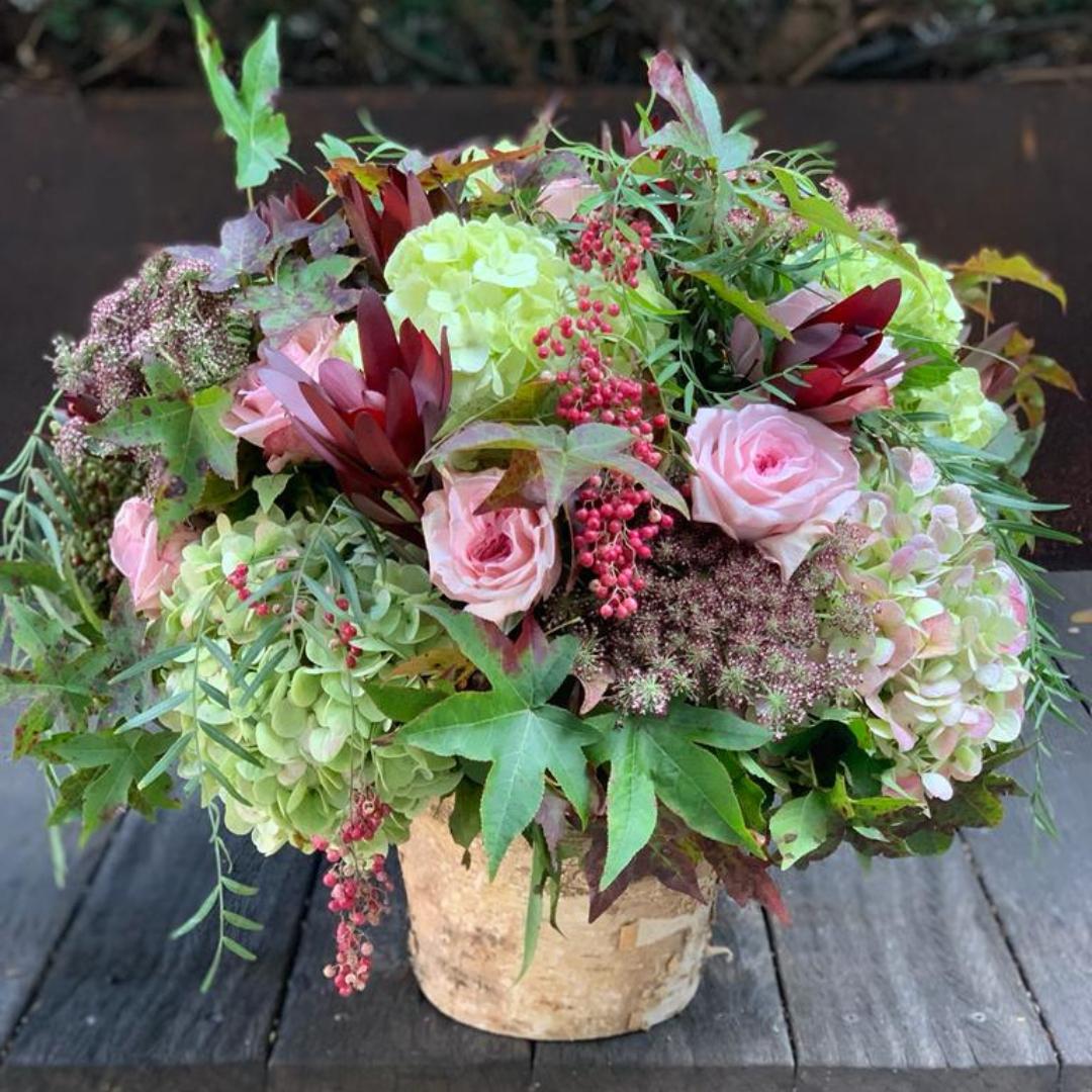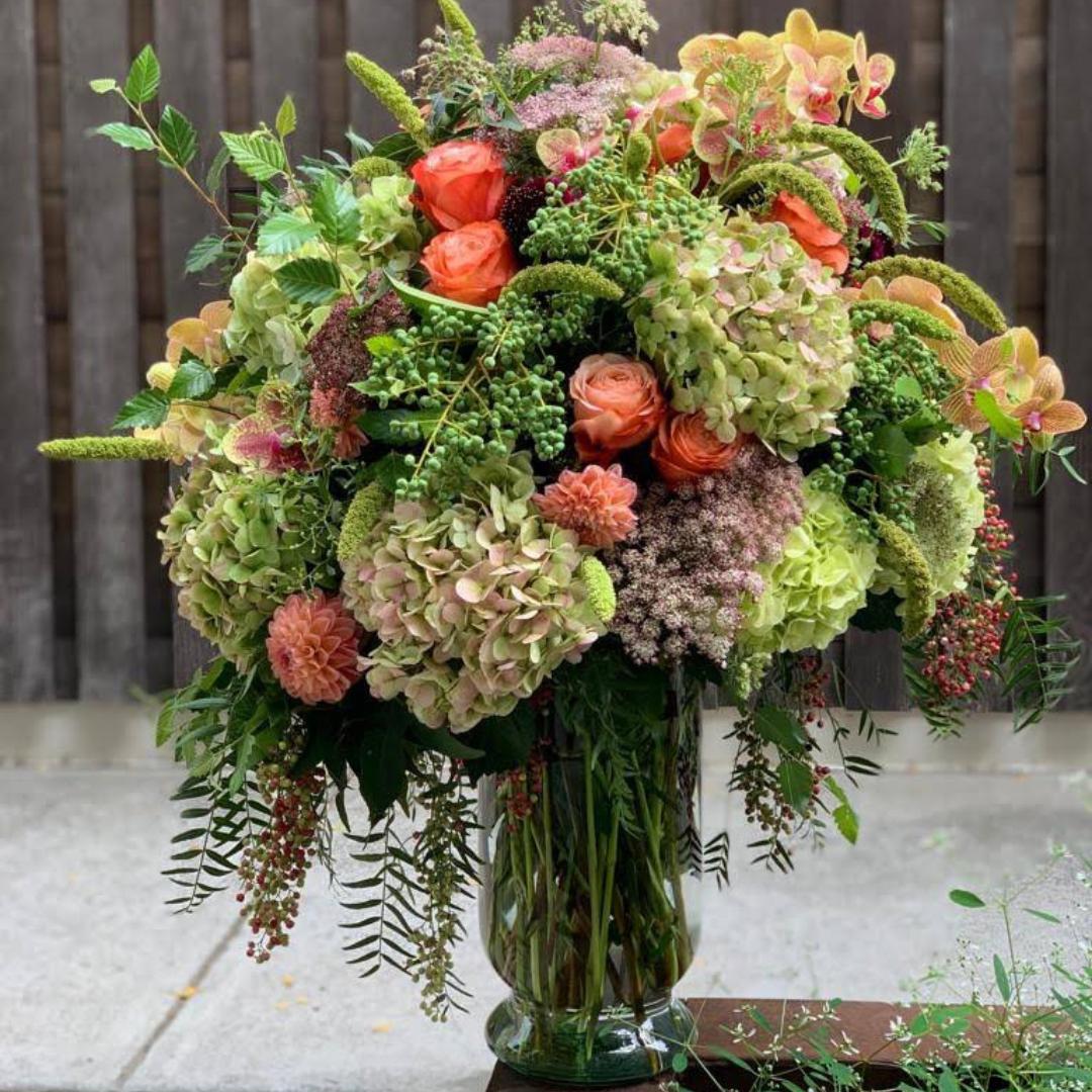 Premium Flowers and Textured Foliage featuring Hydrangeas, Roses, and Seasonal Accents