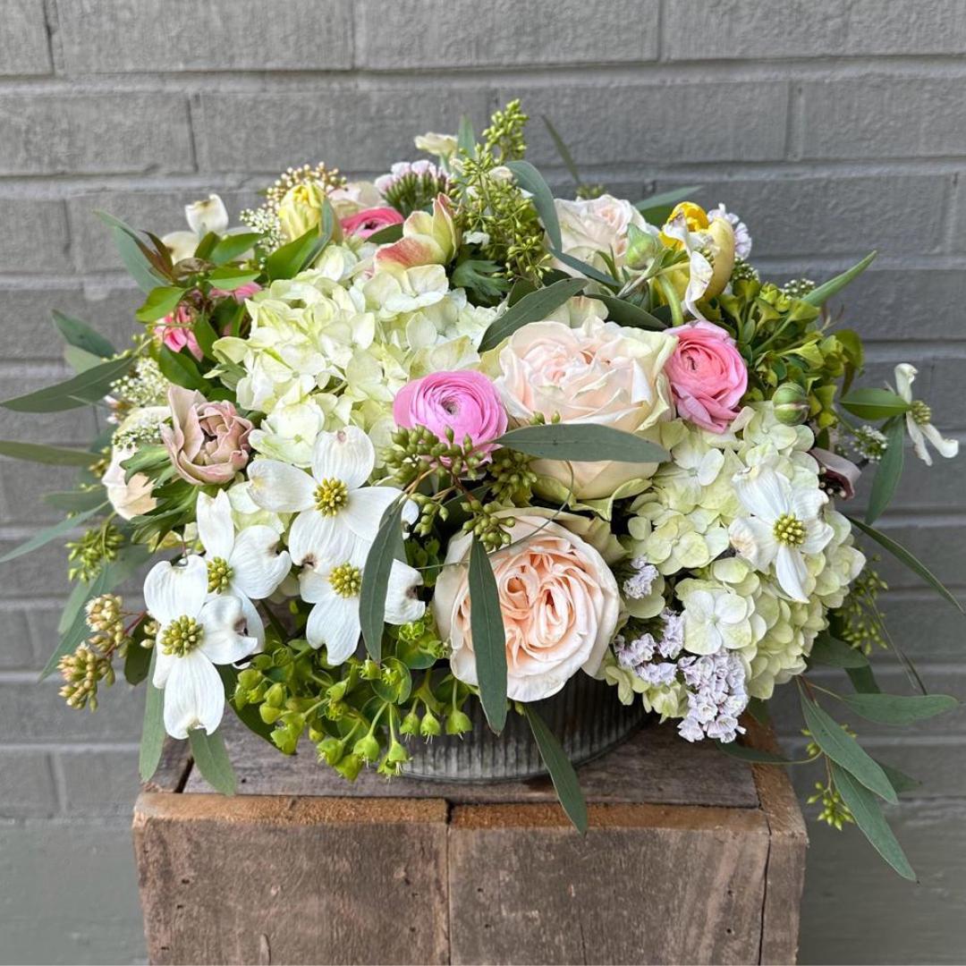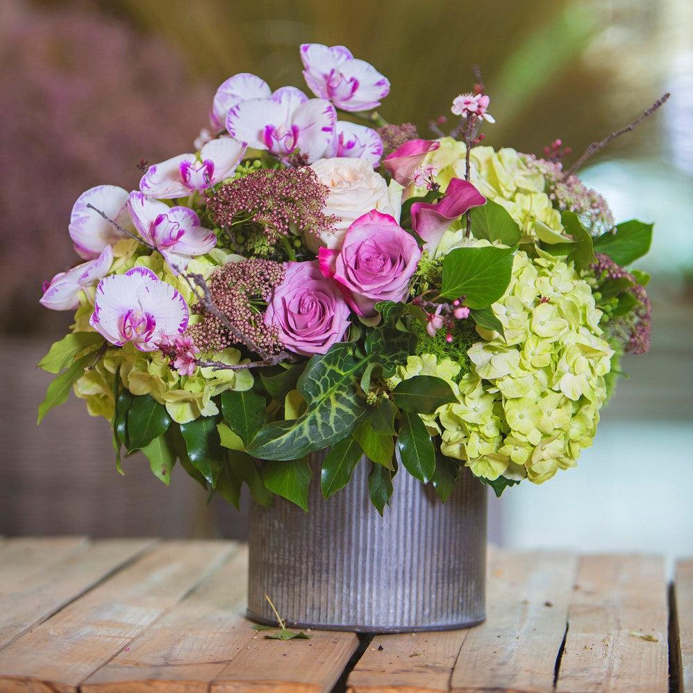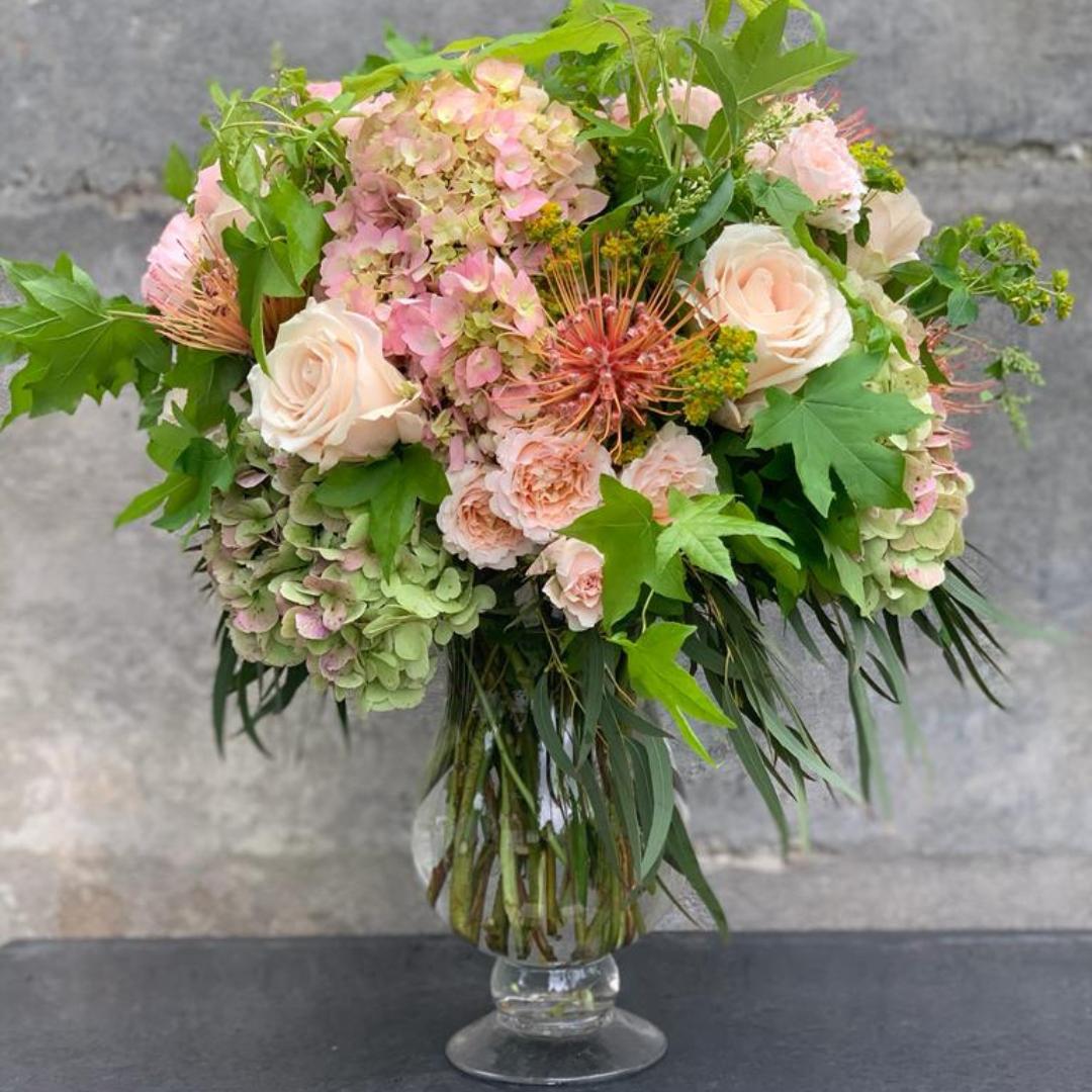 Premium Flowers and Textured Foliage featuring Hydrangeas, Roses, and Seasonal Accents